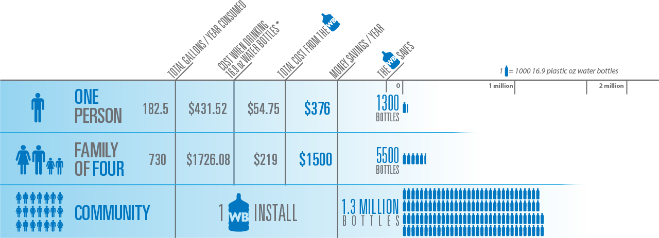 The Water Bottle provides convenient access to high-quality filtered water while helping communities dramatically reduce single-use plastic.